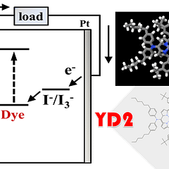 - **YD2-o-C8(YD2)**は、**色のついた“アンテナ”分子(ポルフィリン色素)**の一種。太陽光の広い波長を吸収できます。
