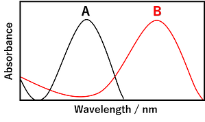 - 色素AとBの吸収が、同じ場所に重なりすぎていない