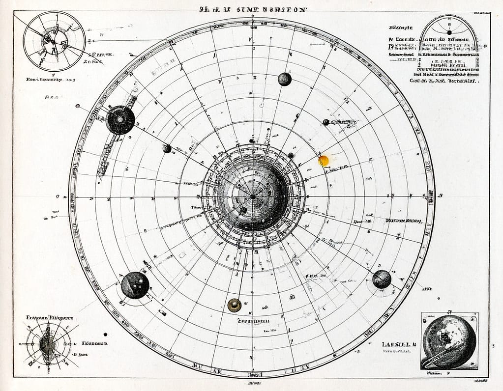 #Astronomie #AntikeKarte #Orbitaldiagramm #Heliozentrisch #Planetenbewegung #Sternkarte #Beobachtungsgeschichte #Ekliptik #Ephemeriden #RetroWissenschaft