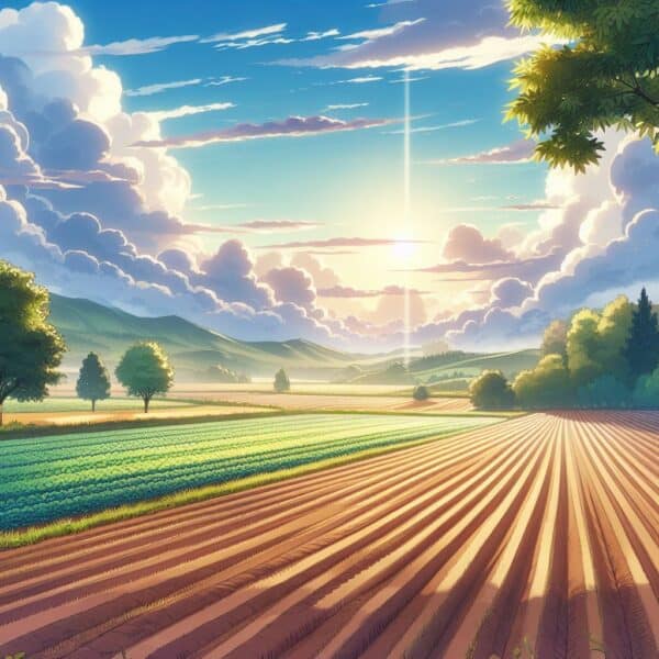 #Farmland #Furrows #Sunrise #Sunbeam #CumulusClouds #MorningMist #PastoralScene #EarlySummerFields #GoldenHour #Horizon