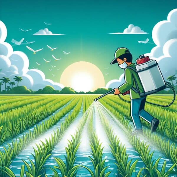 #PesticideSpraying #BackpackSprayer #RiceFarming #FurrowIrrigation #Sunrise #PPE #PestControl #PaddyField #SustainableAgriculture #AgricultureIllustration