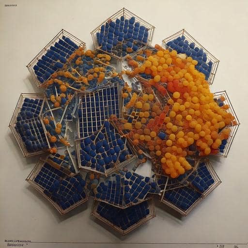 夜空の下にある現代的な家を描いています。この家の屋根全体には多数のソーラーパネルが設置されており、再生可能エネルギーを利用していることがわかります。家のデザインは非常にユニークで、三角形の屋根が特徴的です。家の外観は温かみのある照明で照らされており、内部のリビングスペースやバルコニーが見えます。バルコニーには植物や家具が配置されており、居住者がリラックスできるスペースが提供されています。家の周囲には緑豊かな庭が広がっており、自然との調和が感じられます。この絵は、持続可能なエネルギーの利用と現代的なライフスタイルの融合を示しており、環境に配慮した生活の一例として興味深いです。