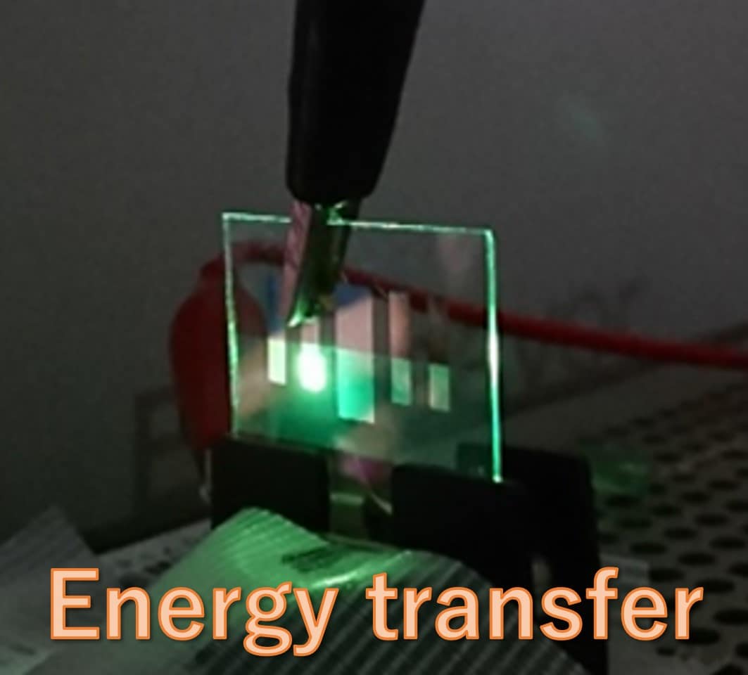 - TADF分子を「エネルギーの中継役(増感体)」として使い、