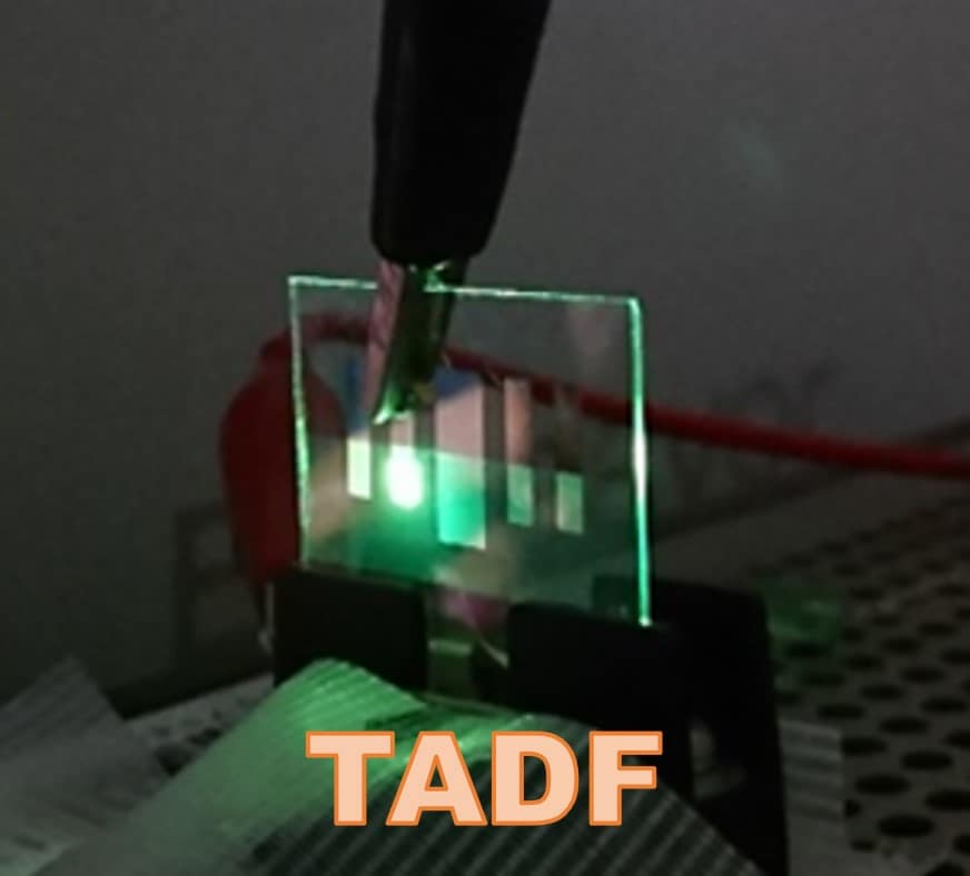 - TADF:熱エネルギーで三重項→一重項へ戻し、遅延蛍光として発光させる仕組み
